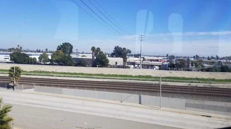 This image of me approaching my last stop on the train. Outside tracks and manufacturing warehouses can be seen.