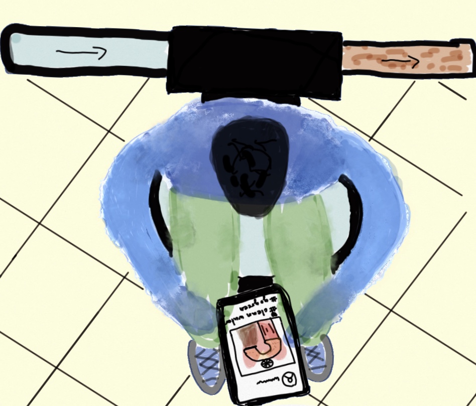 As a person who rides the train both paintings seemed very real as I were in the train. Especially, the seats since charcoal has a particular texture that does not distribute equally. Providing a very close resemblance to the cloth on the seats. Provide the ideas of the artist I was more aware of the people. They seem relatively far but when I think about where they might be headed the more I see they can be very similar. This has allowed me to appreciate the pieces even more because they feel like an experience.